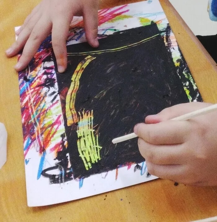 子どもたちの感覚や情緒、創造力を育む「クレヨンひっかきアート」。